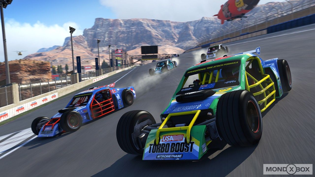 Trackmania Turbo si presenta subito con quattro ambientazioni piuttosto diverse tra loro, che vanno a influire sia sul look che sulla guidabilità dei veicoli presenti (all'interno di una stessa area comunque non ci saranno differenze di performance, così da livellare la competizione). C'è Canyon dal look desertico con tanto di dirupi, tunnel, dighe, e che presenta un tipo di veicolo votato alle derapate; Valley che presenta velocità più basse nella tipica campagna europea, il tutto accompagnato da una macchina con una guidabilità piuttosto pesante; la velocissima Lagoon che ambientata tra isolette tropicali e che prevede una guida estremamente reattiva su piste anche verticali grazie a strade magnetiche, ed infine il ritorno di Stadium, che propone un look olimpionico e bolidi stile Formula 1, che i fan di vecchia data conosceranno già (pur essendoci diverse novità). Certamente i look in sé non fanno il gioco, ma Trackmania è noto anche per le sue acrobazie e piste surreali, e infatti la differenza tra le ambientazioni si nota proprio qui.