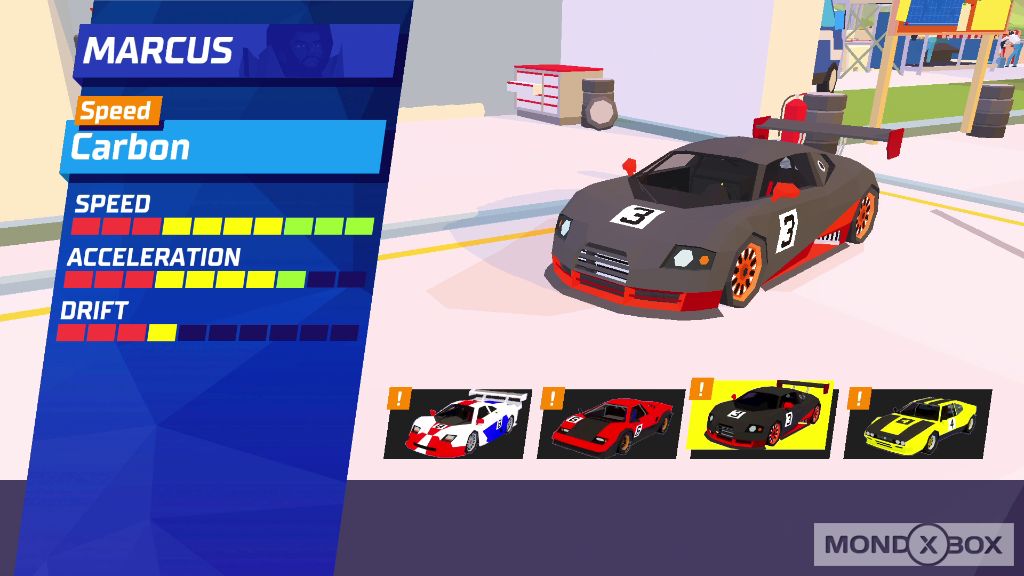 Il gioco mostra una profondità sorprendente anche per quel che riguarda i veicoli e i piloti utilizzabili. Troviamo 8 personaggi, ognuno dei quali con quattro mezzi a disposizione, uno ciascuna per stile di gioco: sprint, drift, accelerazione, stabilità. Ogni stile di guida è egregiamente rappresentato e permette di superare senza troppi problemi ogni pista, ma sta al giocatore capire quale veicolo renda meglio su ogni percorso. La modalità principale prevede delle coppe di quattro piste da correre in sequenza sempre con la stessa auto, quindi bisogna inevitabilmente trovare un buon compromesso per non rimanere troppo svantaggiati in nessuna delle piste. La struttura di queste coppe sembra trapiantata direttamente da Mario Kart: 4 gare da 3 giri ciascuna, punti assegnati all'arrivo. Vince chi ha più punti dopo quattro gare. Con quattro coppe, 16 piste e 3 difficoltà da affrontare, c'è una buona quantità di sfide da affrontare già in questa modalità.