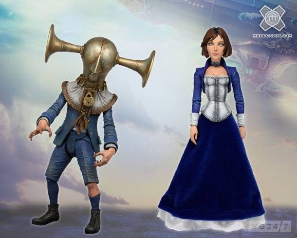 NECA Toys ha annunciato l'arrivo di una serie di action figures dedicate al mondo di BioShock Infinite. I primi due personaggi, Elizabeth e il nemico Boys of Silence, saranno disponibili da gennaio 2013, saranno alte 7 pollici (circa 18 cm) e avranno 20 punti di articolazione. Potete avere un'anteprima grazie all'immagine di seguito, mentre non si ha nessuna notizia su quali saranno i personaggi che usciranno in futuro.