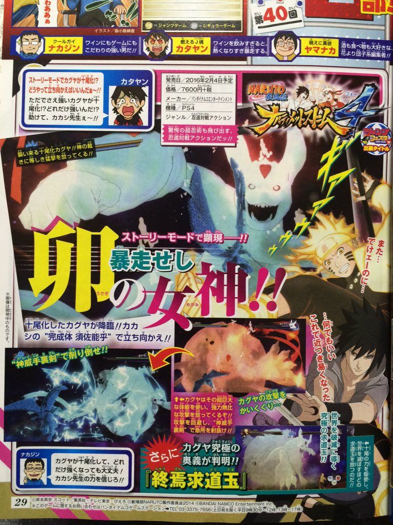 Inoltre la scan, che potete visionare in calce alla notizia, rivela che i giocatori potranno utilizzare nella modalità multigiocatore la trasformazione di Kaguya come parte dello jutsu finale nel corso di una battaglia.