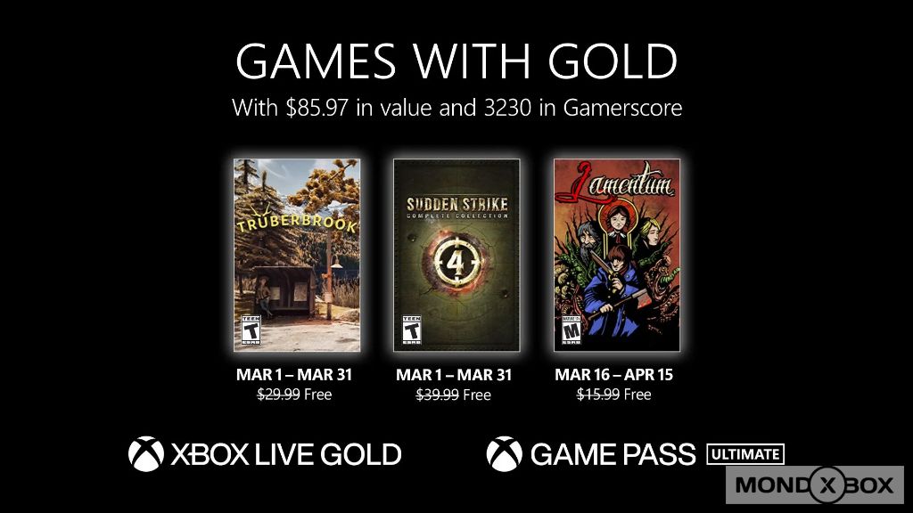 Microsoft ha annunciato oggi i tre titoli (uno in più del solito, da quando sono stati rimossi i giochi Xbox 360) che saranno scaricabili gratuitamente dagli utenti Xbox Live Gold e Xbox Game Pass Ultimate nel mese di marzo.