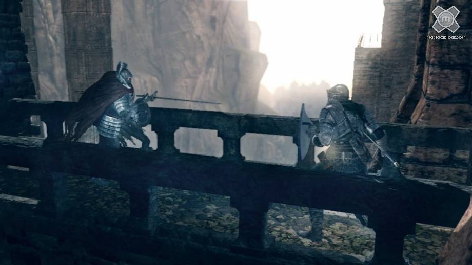 Dark Souls si discosta quindi dai canoni classici di molti GdR, che fanno di una storia profonda e articolata il loro punto di forza. Qui invece, a parte l’incipit narrato nel bellissimo filmato introduttivo e i brevi dialoghi con i pochi personaggi che incontreremo, non abbiamo sostanzialmente altri approfondimenti della storia, a parte ovviamente il finale. Il gioco ci spiega l’indispensabile, quel tanto che basta per incuriosirci e darci un motivo valido per esplorare il mondo, punto. Anche i dialoghi, solitamente molto frequenti in questo genere, sono ridotti all’osso e si riducono a poche battute scambiate con il manipolo di personaggi che incontriamo; niente risposte multiple, niente scelte tra il bene e il male, solo poche, essenziali frasi che i personaggi pronunceranno per spiegarci brevemente il motivo della loro presenza in quello specifico luogo, offrendoci magari dell’equipaggiamento da comprare o magie e miracoli d imparare. Esistono comunque delle eccezioni; alcuni personaggi custodiscono importanti segreti e starà alla nostra bravura riuscire a capire cosa vogliono e come aiutarli per ottenere preziose e rare ricompense.