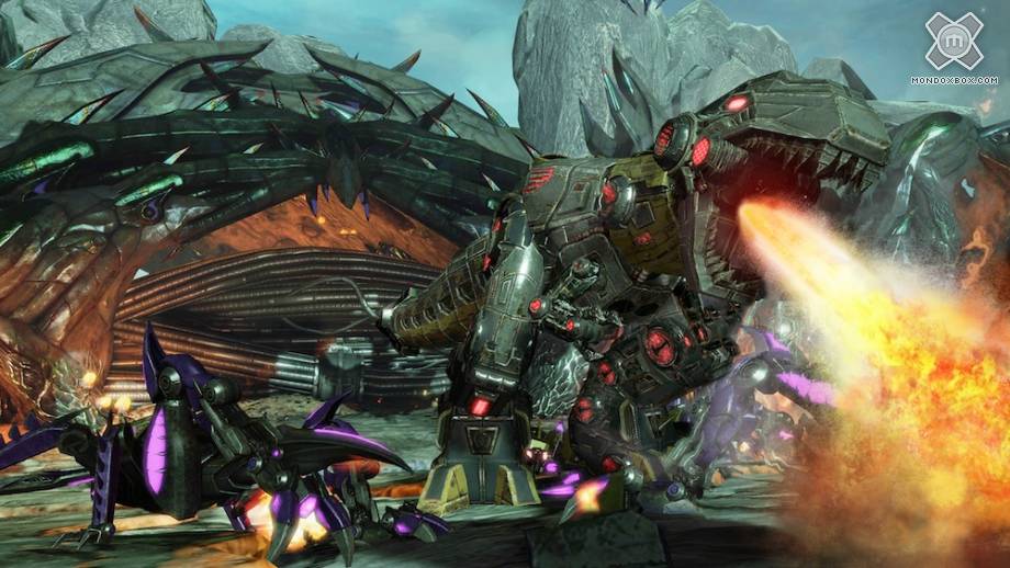 Collocato temporalmente prima delle vicende narrate nella popolare trilogia cinematografica, Transformers: La Caduta di Cybertron riprende la trama lasciata incompiuta alla fine di Transformers: La Battaglia per Cybertron, uscito nel 2010 e prodotto dagli stessi High Moon Studios, in cui Autobot e Decepticon si affrontavano per il predominio del proprio pianeta natale, Cybertron. In Transformers: La Caduta di Cybertron, a seguito della terribile battaglia tra le due fazioni, il pianeta veleggia verso la distruzione totale e costringe gli Autobot a mettersi in viaggio nello spazio alla ricerca di un altro posto in cui vivere. I Decepticon però sono ancora vivi e non hanno intenzione di lasciare che i loro acerrimi nemici fuggano senza lottare: da questo spunto parte un’interessante trama raccontata attraverso tredici capitoli giocabili, in ognuno dei quali ci troviamo a comandare un Transformer diverso, Decepticon inclusi.Il gioco, esattamente come il precedente capitolo, è uno sparatutto in terza persona dall’impostazione piuttosto classica, con l’aggiunta di qualche variante interessante come la possibilità di trasformarsi in qualsiasi momento in mezzi di vario genere (sia terrestri che volanti) e di migliorare la qualità delle proprie armi attraverso degli appositi negozi, nei quali è possibile comprare upgrade di vario tipo spendendo i punti esperienza guadagnati nel corso del gioco. Il funzionamento dell’energia vitale somiglia in qualche modo a quello visto nella saga di Halo, visto che ogni robot dispone di uno scudo auto-rigenerante e di una seconda barra di energia che viene intaccata solo dopo che lo scudo è stato totalmente neutralizzato. Ogni robot è poi dotato di un’unica e speciale abilità di combattimento, come ad esempio la possibilità di diventare invisibili per qualche secondo, di utilizzare un rampino per raggiungere luoghi altrimenti inaccessibili o di liberare mini-robot in grado di compiere svariate funzioni.