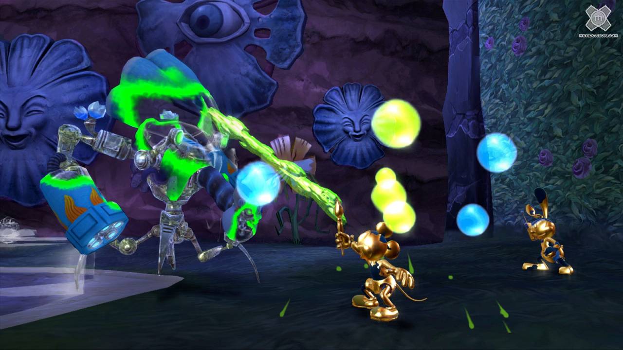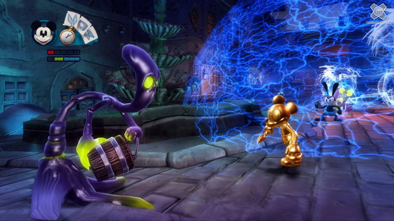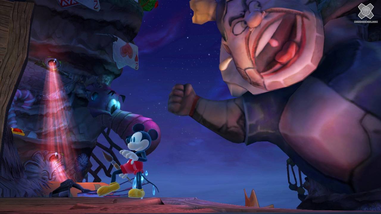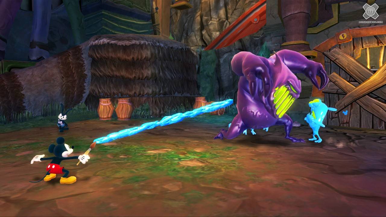 - Arriviamo a parlare del problema principale di Disney Epic Mickey 2: L'Avventura di Topolino e Oswald: il livello di sfida altissimo. Una scelta abbastanza incomprensibile dato che il gioco dovrebbe mirare a raccogliere i favori del pubblico più giovane. Senza l’aiuto di un adulto, un bambino si ritroverà tra le mani un prodotto a tratti di una difficoltà incredibile. Non sono tanto i salti che Topolino dovrà compiere tra una pedana e l’altra a scoraggiare il giocatore, quanto gli enigmi. Questi risultano spesso difficili da comprendere; non è quasi mai ben chiaro cosa fare per risolverli, e questo mi ha portato a bloccarmi tante volte nelle varie sessioni di gioco procedendo a tentativi.
