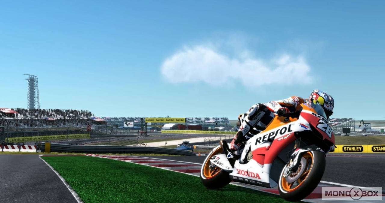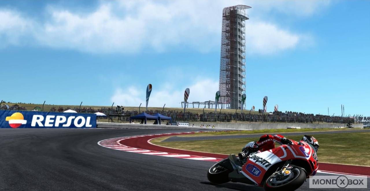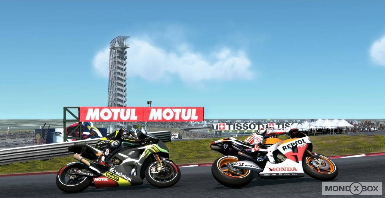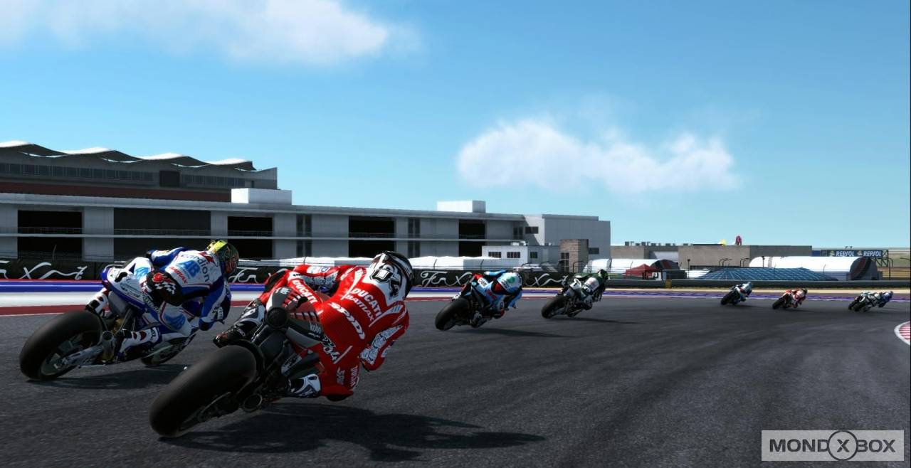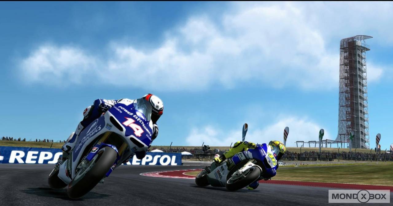 In tutte le modalità è possibile settare un gran numero di opzioni prima di partire: durata della gara, meteo, livello degli avversari, grado di simulazione della guida, consumo gomme, danni e tanto altro. Inoltre, si può decidere di affrontare un weekend completo con tanto di prove libere e qualifiche, oppure di scendere in pista solo per la gara (ovviamente partendo dall’ultima posizione). Prima di salire in sella, dal proprio box si può modificare il setting della moto in due maniere distinte: i più esperti potranno intervenire direttamente sulle componenti da sistemare e scegliere da soli quali modifiche apportare, mentre i novizi potranno affidarsi all’esperienza del capo tecnico che, attraverso una serie di domande sui problemi riscontrati alla guida, ci consiglierà quali modifiche apportare. Infine, accanto a queste modalità per giocatore singolo trova posto l’immancabile sezione multiplayer, online e a schermo condiviso: la sezione online in particolare è ben curata, visto che offre la possibilità di correre Gran Premi completi con tanto di turni di prova o persino interi campionati, personalizzando il tutto tramite le tante opzioni pre-corsa elencate poco sopra. Il numero massimo di piloti che possono gareggiare online è di 12, e nel caso in cui nella stanza siano presenti meno di 12 giocatori umani è possibile riempire i posti rimanenti con piloti controllati dalla CPU. Portando a termine le gare in ogni modalità, sia in single player che in multi, si ottengono punti EXP che contribuiscono ad aumentare il nostro “livello GP”: per ogni livello raggiunto si sbloccano piloti o scuderie da utilizzare nelle varie modalità di gioco, oppure contenuti multimediali (foto e video) dedicati al Motomondiale.