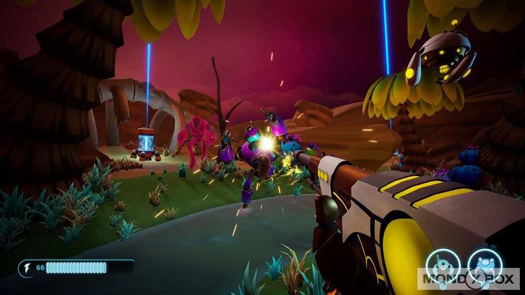 Aftercharge ricorda molto l'approccio degli arena shooter multigiocatore degli anni '90: la trama è di fatto inesistente, e conta solo il gameplay competitivo. Chi cerca una storia profonda o sorprendente, è quindi pregato di guardare altrove: il titolo di Chainsawesome Games è interamente focalizzato sul multiplayer, e grazie al lancio dal day one nell'Xbox Game Pass, oltre al supporto cross-platform, ha l'aspirazione di diventare un piccolo fenomeno come accadde a Rocket League qualche anno fa, quando fu "regalato" agli utenti del PS Plus di Sony.