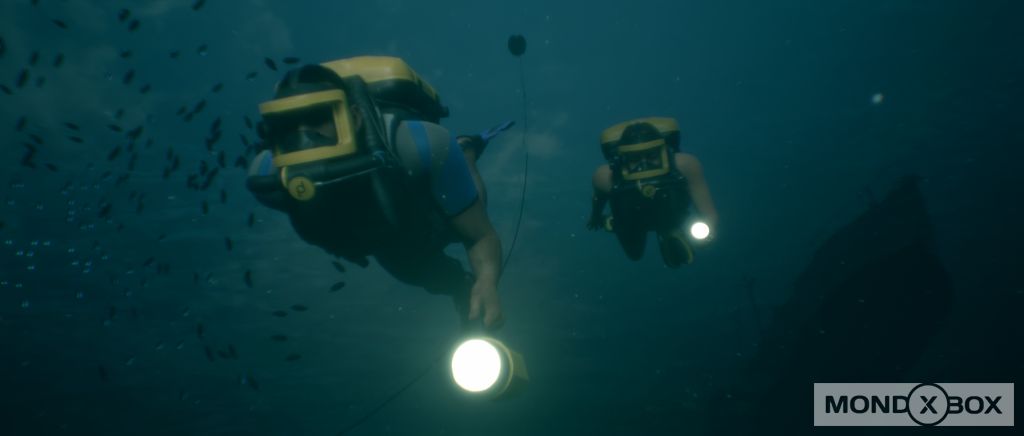 Eh già, perché a differenza di praticamente tutti gli altri giochi di questo tipo (dalle avventure Telltale a quelle di Quantic Dream, incluso lo stesso Until Dawn di Supermassive dal quale The Dark Pictures: Man of Medan eredita molti tratti), qui troviamo anche delle modalità pensate specificamente per giocare tra amici. Il menu principale del gioco ci presenta infatti due opzioni iniziali, "Non giocare da solo" e "Gioca da solo"; mentre la seconda porta alla classica esperienza single player, selezionando la prima abbiamo la possibilità di accedere alle modalità "Storia condivisa" e "Serata al cinema". La prima ci permette di giocare online con un amico, controllando ognuno un personaggio diverso: quando i due personaggi sono insieme nella stessa scena, potremo interagire e portare avanti insieme la storia, ma poi se/quando si divideranno ognuno continuerà la storia dalla propria prospettiva, raccontandosi a vicenda quello che accade e dandosi consigli. La modalità "Serata al cinema" invece permette ad un massimo di 5 giocatori di seguire l'intera storia davanti alla TV, passandosi il controller quando è il momento di controllare il proprio personaggio (o i propri, visto che i personaggi vengono spartiti tra i giocatori presenti se sono meno di 5) e contribuendo così alle decisioni per portare avanti la trama.