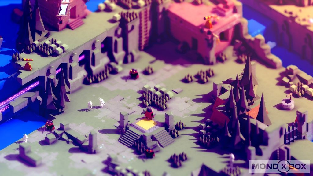 Tunic mira a ricreare l'esperienza di provare per la prima volta da piccoli un misterioso gioco di ruolo, di cui non sappiamo trama, lore, regole e dentro il quale siamo finiti quasi per sbaglio. Il fascino e l'ignoto ci spingono ad andare avanti, con ogni progresso e nuova scoperta che hanno un sapore di rivoluzione. Quest'avventura parte infatti con poche introduzioni, ponendo senza troppi preamboli il protagonista, una simpatica volpe antropomorfa, in un mistico mondo 3D con visuale isometrica, dove un level design "a quadretti" simile ai giochi NES è realizzato con una grafica moderna ed evoluta, seppur mantenendo per scelta artistica le forme squadrate e le superfici lisce. Splendidi passaggi tra giorno e notte illuminano o oscurano egregiamente lo scenario, con gli elementi dei livelli che riflettono luci e ombre in maniera suggestiva, creando un particolare ed apprezzabilissimo mix di retrò e moderno.