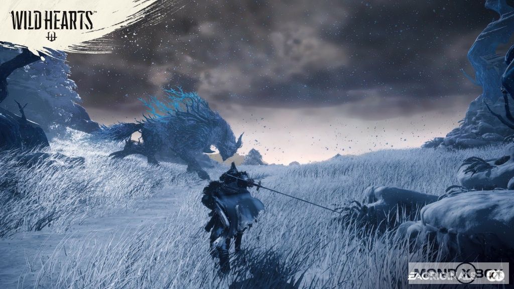Wild Hearts è un RPG d’azione in terza persona sviluppato dallo studio Omega Force di Koei Tecmo, noti autori della serie musou Dynasty Warriors, e pubblicato da Electronic Arts. Nello specifico, parliamo di un cosiddetto “hunter-like”, facendo riferimento alla serie Monster Hunter, ovvero di un gioco basato sulla caccia di gigantesche creature, sulla raccolta di risorse e sul crafting di nuovo equipaggiamento. La nuova IP sviluppata dallo studio giapponese non si limita però a fare sue le meccaniche tradizionali del genere ma, anzi, prova a spingersi un po’ oltre sia per quanto riguarda la trama sia per quanto riguarda il gameplay. La sceneggiatura alla base di Wild Hearts vede il nostro alter-ego, che è possibile personalizzare in ogni dettaglio nelle primissime fasi di gioco, raggiungere Azuma, una regione di fantasia dichiaratamente ispirata allo stile e al folklore del Giappone feudale. La provincia, che fino a pochi anni prima prosperava pacificamente nonostante le mire del governo centrale, è oggi il terreno di caccia preferito dei Kemono, creature animali cresciute a dismisura e rese estremamente aggressive a causa di un misterioso potere naturale che ha avvolto la regione. Dopo essersi imbattuto in uno dei Kemono ed esserne uscito vivo per il rotto della cuffia, al nostro personaggio viene donata l’abilità di piegare a proprio piacimento questo potere e di sfruttarlo per costruire i cosiddetti Karakuri, delle strutture più o meno complesse usate sin dai tempi antichi dai cacciatori della regione.