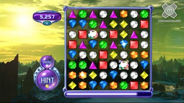 Chi abitualmente chatta con il servizio di Microsoft MSN sicuramente conosce Bejeweled, simpatico puzzle-game nel quale bisogna allineare la una sfilza di tre o più gemme colorate (viva l’originalità!) affiancandole in orizzontale o verticale. Bene, ora anche chi non conosce questo giochino sarà contento di sapere che sul Live Arcade è presente Bejeweled 2 Deluxe, che oltre al numero non si differenzia molto dal titolo offerto da MSN. I programmatori di PopCap Games hanno cercato di adattare la scarna grafica dell’originale proponendoci questa versione con dei fondali mai troppo invadenti o fastidiosi, che fanno una bella figura sui nostri televisori (specialmente in HD). Carine le musiche, molto adatte allo stile di gioco decisamente lento e rilassante ma non noioso ed effetti "ovattati" in tema ed integrati perfettamente nel contesto.