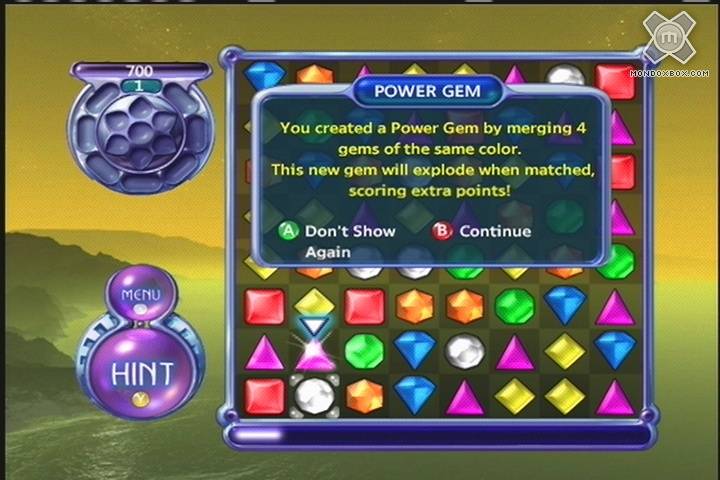 La modalità puzzle invece è pensata per chi vuole arrostirsi il cervello e presenta un’interessante schema preconfezionato di gemme che dobbiamo allineare e far esplodere senza sbagliare un colpo. Troviamo infine la modalità Infinito, che permette di godersi il gioco senza problemi: sta a noi decidere quando smettere. In Live ci sono dei folli con punteggi stratosferici. Ottima l’idea di un comando di aiuto (tasto Y), che ci suggerisce la mossa da fare togliendoci però ben 50 punti ed un buon 20% di riempimento della famosa barra in basso.
