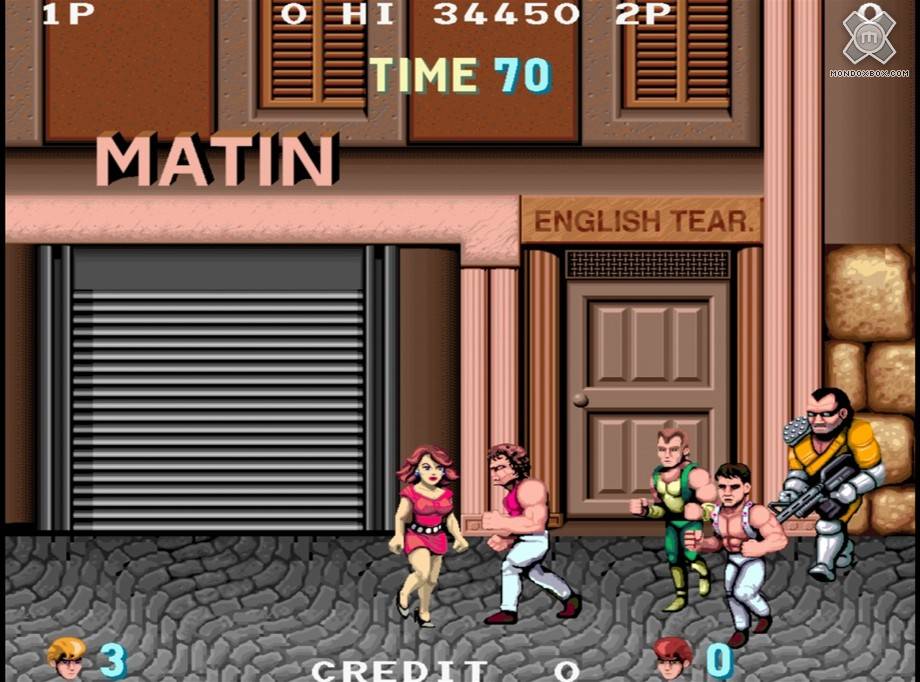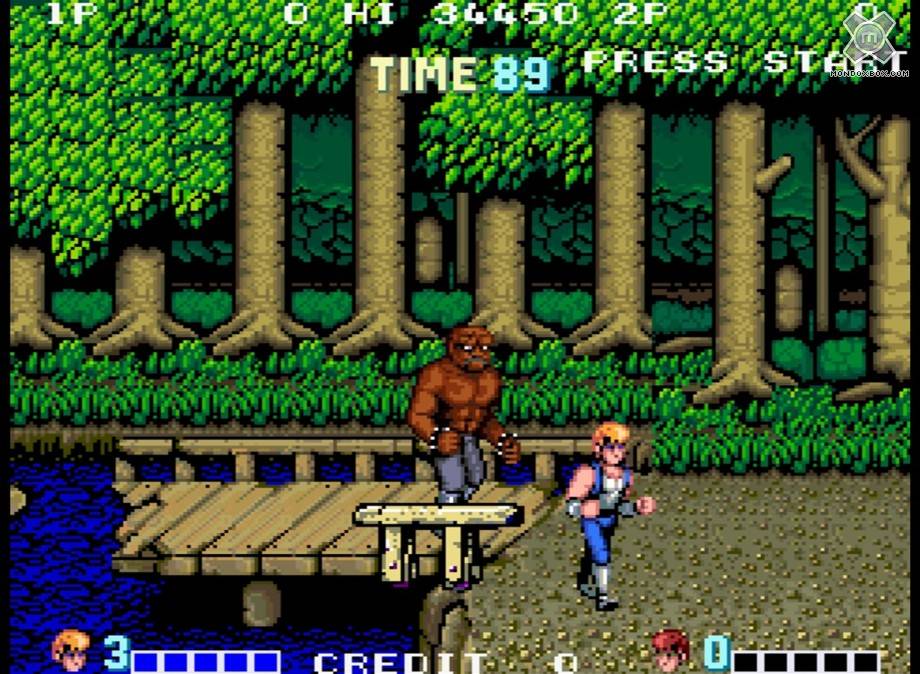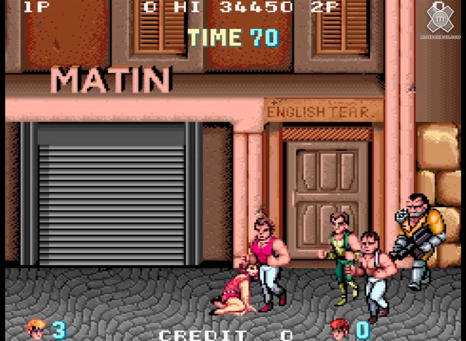 A parte questo, come detto, il restyling è gradevole ma i più grandicelli non resisteranno a lungo e selezioneranno dal menù la versione originale: decisamente sconsigliata però se giocate su grossi pannelli in alta definizione. Come varietà degli sprite (gli eredi 2D degli oggetti poligonali) dei nemici non c’è molto da dire, Double Dragon soffre della sindrome del “clone”: i nemici seppur tanti nel numero, sono sempre gli stessi ma cambieranno di colore o nei vestiti. Una menzione particolare la merita il precedentemente citato sosia di Mister T, più avanti lo rincontreremo in versione verde Hulk, a dir poco ridicolo. Questo è un difetto che hanno avuto tutti i giochi di questo genere ormai quasi estinto usciti successivamente, siamo quindi disposti a chiudere un occhio; d’altronde questo è o non è il nonno dei picchiaduro a scorrimento?.