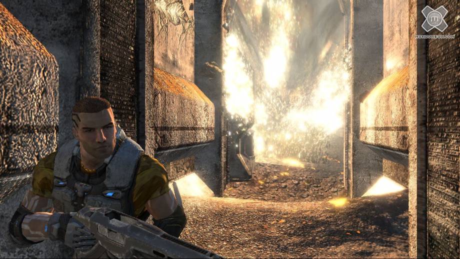 A proteggere il soldato infatti c'è uno scudo "alla Master Chief" che si ricarica nel momento in cui si è al riparo. Ecco quindi che quando la situazione si fa critica basta spararsi il raggio deformante davanti ai piedi per creare un'altura che protegge il soldato dai colpi nemici. Ovviamente queste due “armi” aprono la strada (letteralmente!) a moltissime possibilità di gioco, non solo in combattimento, ma anche negli spostamenti e nel risolvere alcuni semplici enigmi.