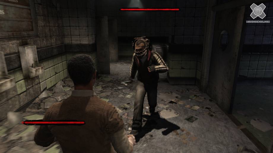 - La molla che ci induce a perlustrare le varie ambientazioni del manicomio è la volontà di arrivare all'epilogo per scoprire l'origine dell'incubo che il detective Tapp sta vivendo, per capire cosa leghi il protagonista agli altri sventurati imprigionati da Jigsaw. Purtroppo però l’interessante trama che fa da cornice al gioco viene totalmente offuscata da un sistema di controllo davvero pessimo e da una telecamera che nella maggior parte dei casi ci disorienta. Il nostro alter ego si muove in maniera decisamente goffa: spesso mi è capitato di soccombere cadendo in una fossa piena di spunzoni o ustionandomi al vapore delle caldaie non per una mia incapacità, ma perché il protagonista non ne voleva sapere di eseguire il comando che gli avevo impartito. Anche gli scontri corpo a corpo con i pericolosi abitanti del luogo sono un vero incubo (nel senso negativo del termine): ogni volta è necessario spingere il tasto per attaccare molto prima che l’avversario si avvicini del tutto; un ritardo nei comandi incredibile.