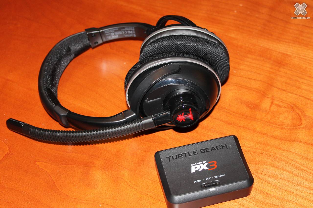 La confezione rivela, oltre alle cuffie stesse, la centralina di collegamento wireless tra cuffie e console ed una serie di cavi: la centralina è alimentata via USB tramite apposito cavo connesso alla console, mentre l'audio viene prelevato tramite cavo RCA dall'uscita del cavo AV di Microsoft oppure dall'analoga uscita audio della TV. Non è purtroppo presente un ingresso ottico, cosa che avrebbe reso più semplice il collegamento almeno con la Xbox 360 S, dotata di uscita ottica di serie (anche se bisogna ammettere che l'utilità di tale connessione è maggiore per dispositivi che supportano l'audio surround). Caratteristica interessante del prodotto è la compatibilità con PS3 e PC, quest'ultimo collegabile sia tramite USB che via uscita audio standard: questo rende le Ear Force PX3 un'ottima soluzione peri giocatori multiformato che volessero un'unica cuffia wireless da usare con tutti i propri dispositivi.
