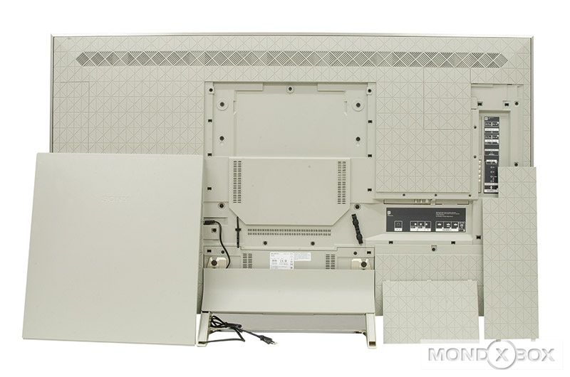 Ad un primo esame esteriore quello che colpisce dello schermo, oltre ovviamente alle importanti dimensioni (145x83 cm), è il basso spessore della cornice, inferiore al centimetro e mezzo, mentre nella parte posteriore leggermente più spessa tutti gli ingressi ed uscite sono coperti da pannelli che aiutano a tenere in ordine i cavi ed a dare un look più "pulito" all'intero schermo. Molto bello anche il piedistallo in colore acciaio satinato, robustissimo e sufficientemente largo per evitare accidentali ribaltamenti anche in caso di urti subiti dallo schermo.